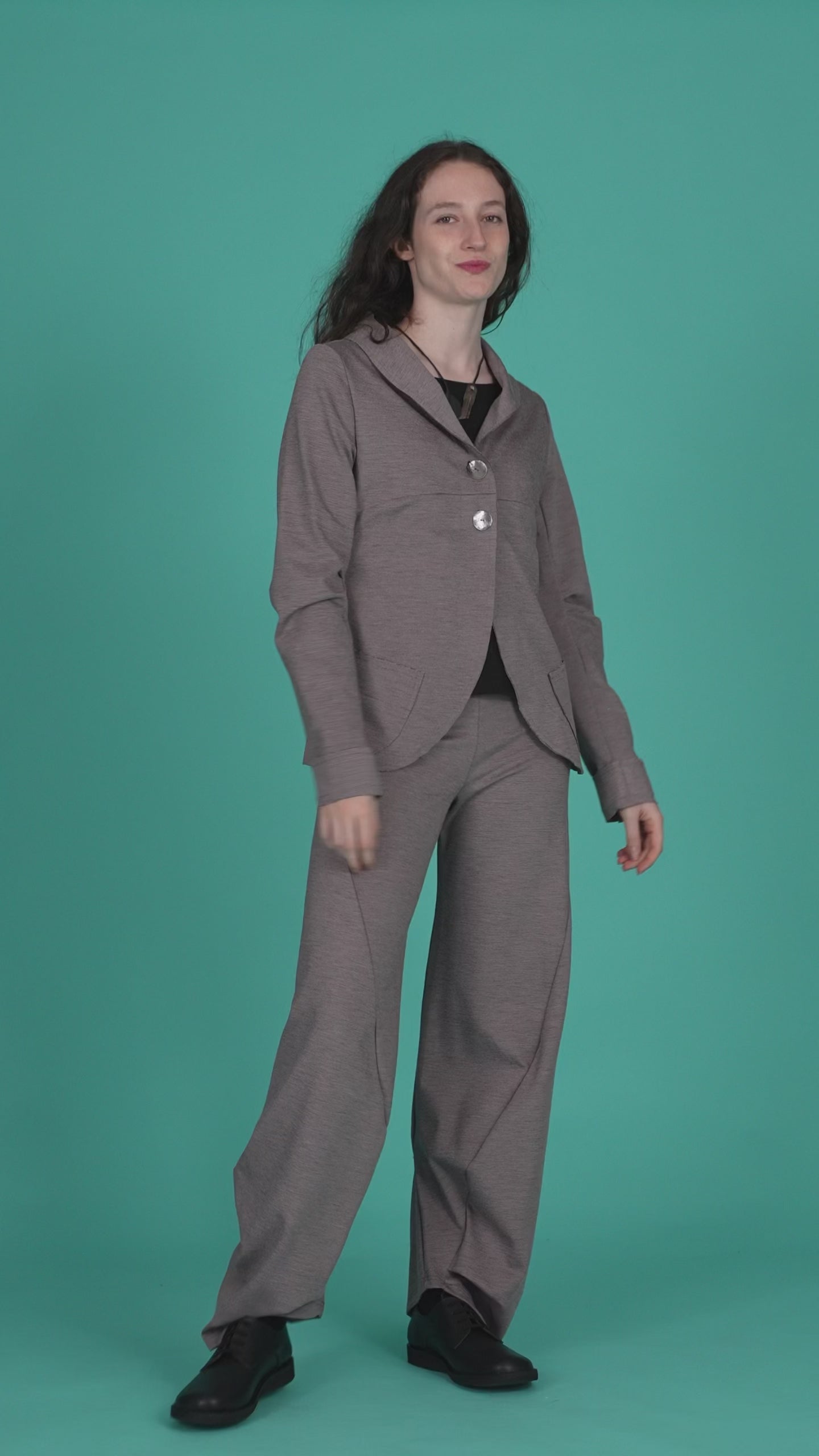 Giacca in punto Milano con tasche applicate e bordi a taglio vivo.