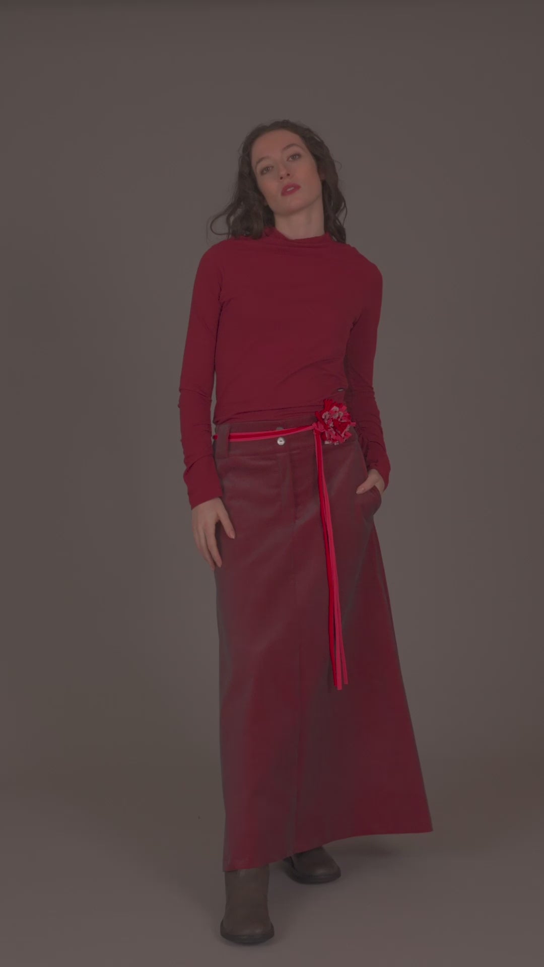 Maglia in jersey con collo a vulcano arricciato e arriccio anche sul fondo manica.
