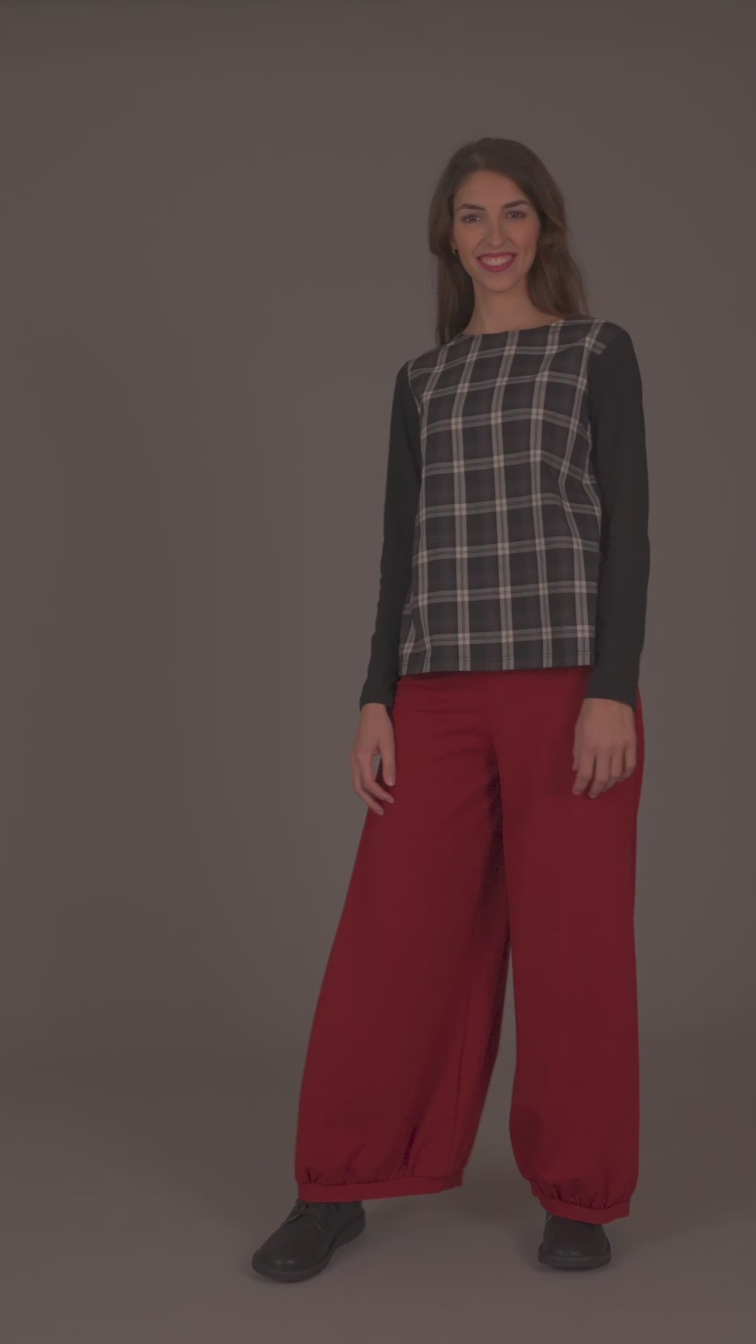 Camicia in jersey svasato, con parte frontale in tessuto a contrasto.